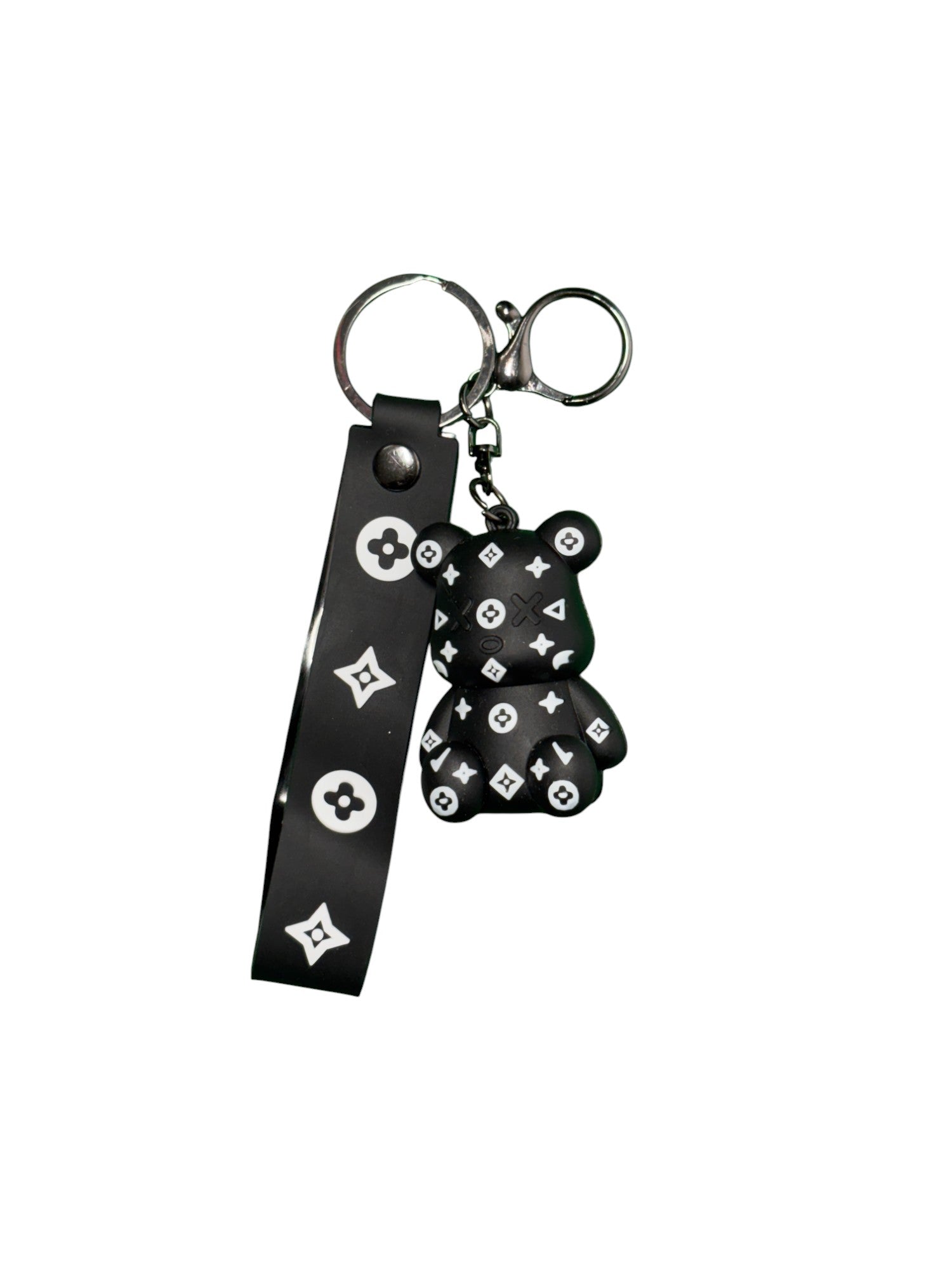 Carry your keys in style with this fashion-inspired bear shape rubber keychain. Designed with a sleek black-and-white pattern strap and matching bear charm, it adds a touch of elegance and fun to your everyday essentials.